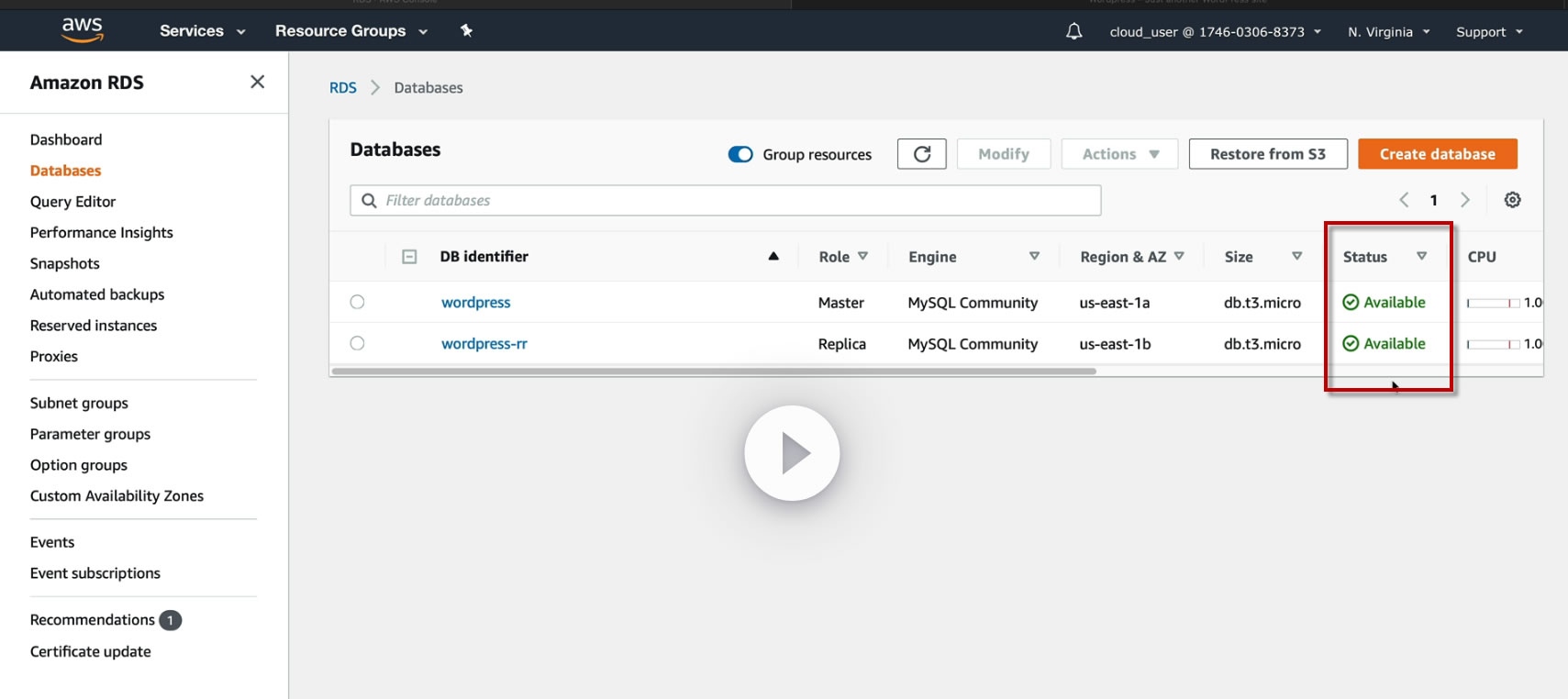 03-13 HANDS-ON LAB Deploying an Amazon RDS Multi-AZ and Read Replica (JPG)