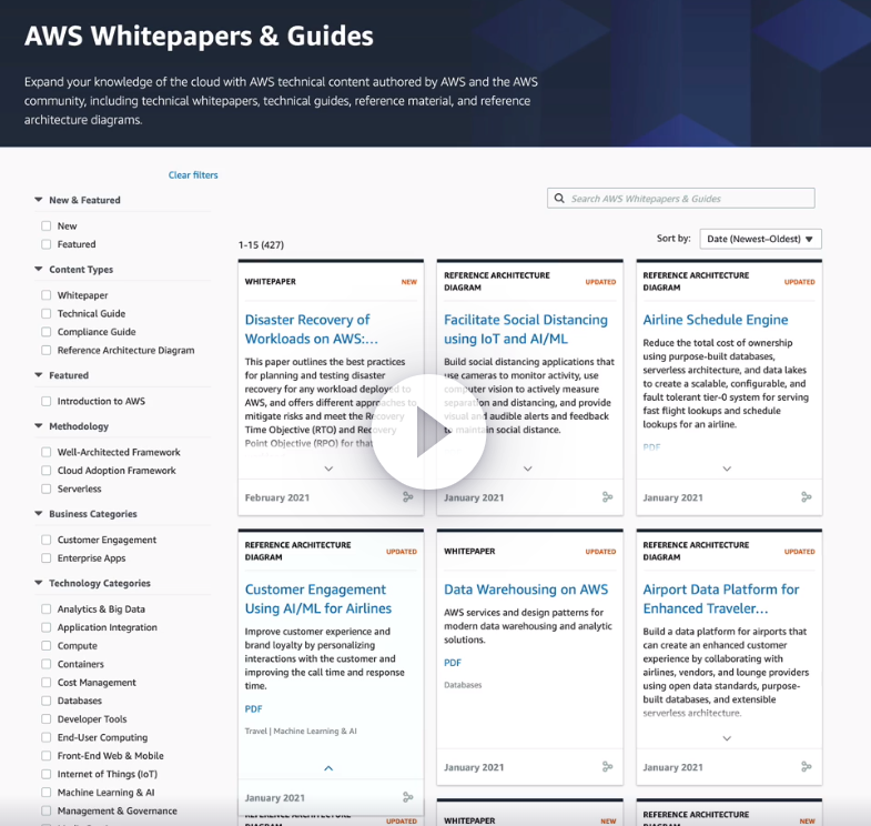 https://aws.amazon.com/whitepapers/?whitepapers-main.sort-by=item.additionalFields.sortDate&whitepapers-main.sort-order=desc&awsf.whitepapers-content-type=*all&awsf.whitepapers-tech-category=*all&awsf.whitepapers-industries=*all&awsf.whitepapers-business-category=*all&awsf.whitepapers-global-methodology=*all
